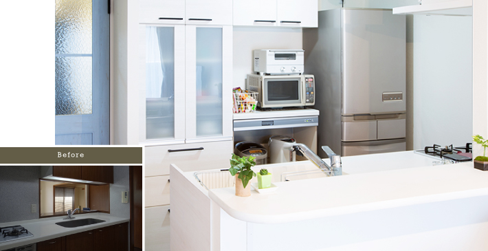 カウンターキッチンやモダン和室との開口部を広げたことで、